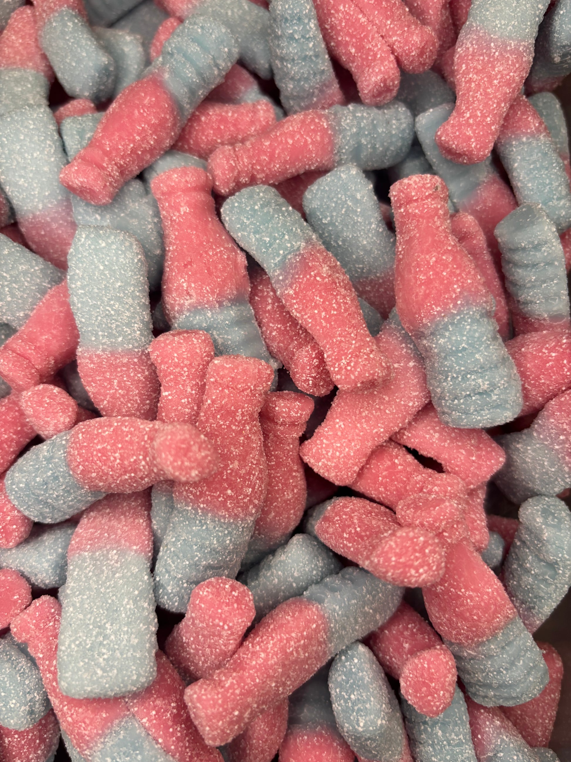 📋 Ingrédients : Sirop de glucose, Sucre, gélatine, Acidifiants: Acide malique, Acide citrique; Correcteur d'acidité (Carbonates de sodium), denrées alimentaires colorantes: concentré de spiruline, pomme; - Arôme - Colorant: anthocyanes.