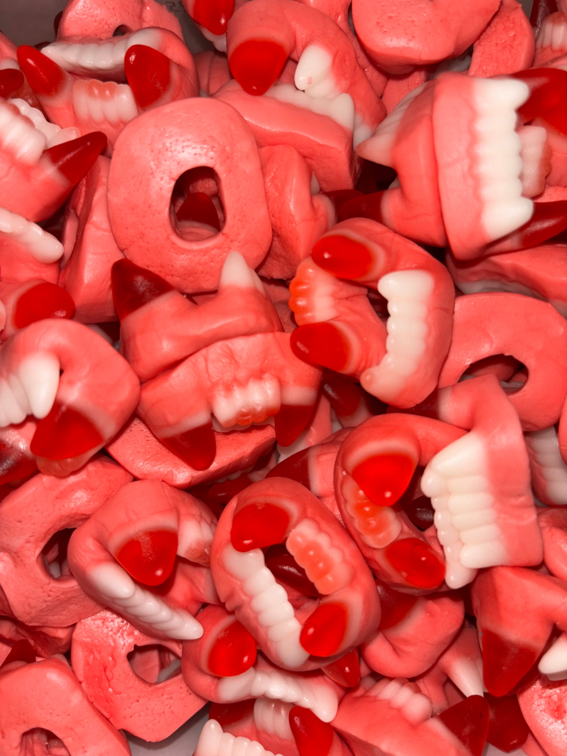 Sirop de glucose; sucre; gélatine; acidifiants: acide citrique, acide lactique; humectant: sorbitols, arômes, colorant: carmins; agents d'enrobage: cire d'abeille blanche et jaune cire de carnauba