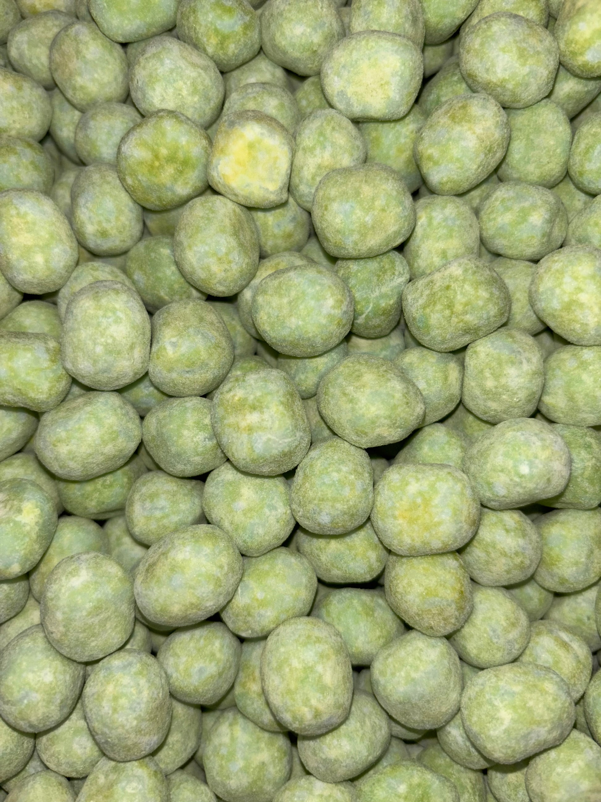 Ingrédients: Sucre, sirop de glucose, graisse végétale totalement hydrogénée de coprah, dextrose, humectant : sorbitols, stabilisant : gomme arabique, malt dextrine, acidifiants : acide citrique, acide malique, amidon, jus concentré de pomme, arôme naturel, correcteur d'acidité : malates de sodium, émulsifiants : mono et diglycérides d'acides gras, concentré de spiruline et carthame
