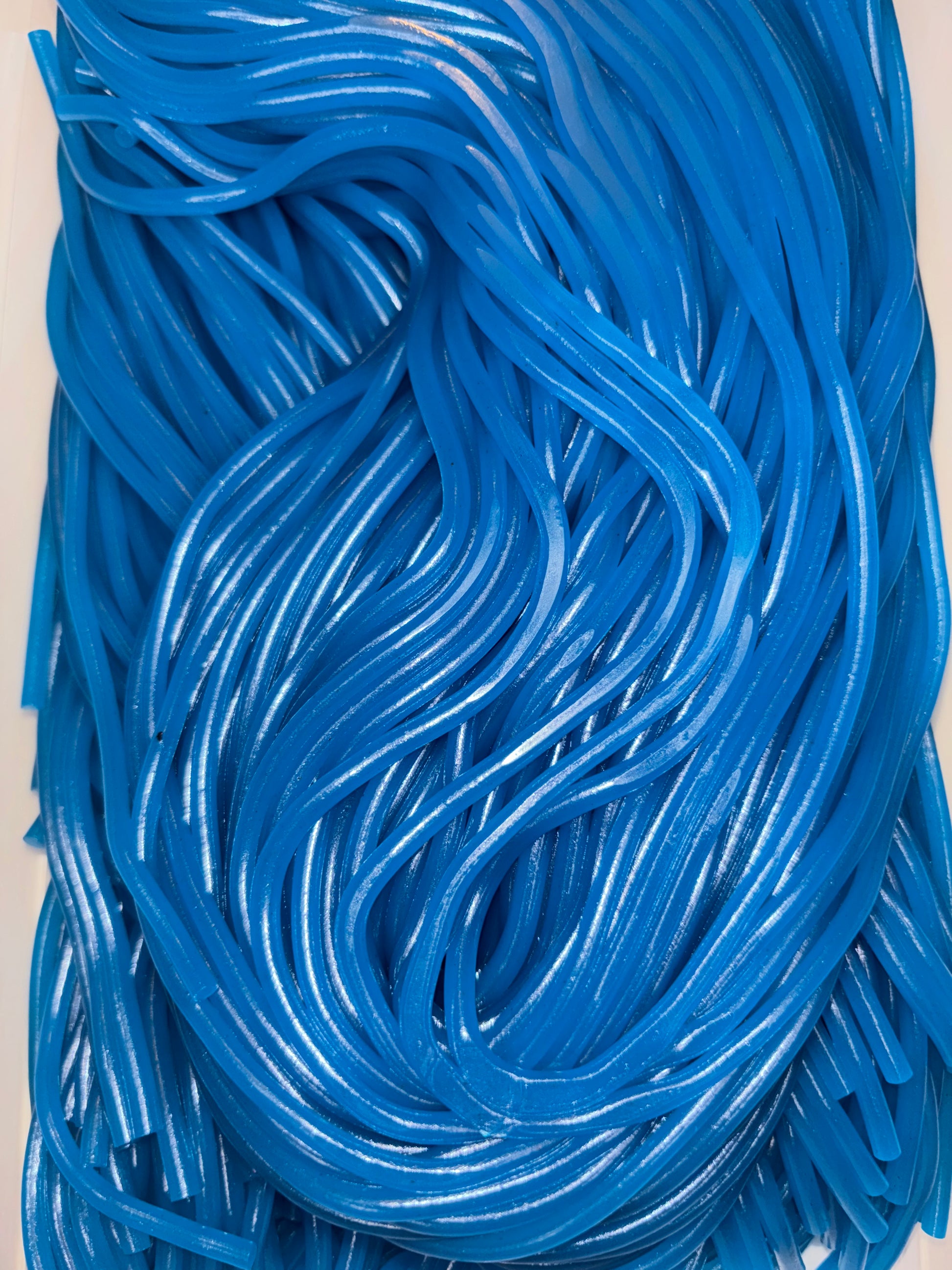 Ingrédients: Sirop de glucose-fructose, farine de blé (gluten), sucre, eau, humectant (sirop de sorbitol), amidon de maïs, graisse de palme, acidifiant (acide citrique), arôme, émulsifiant (mono et diglycérides d'acides gras), colorant (E133*), agent d'enrobage (E901, E904).