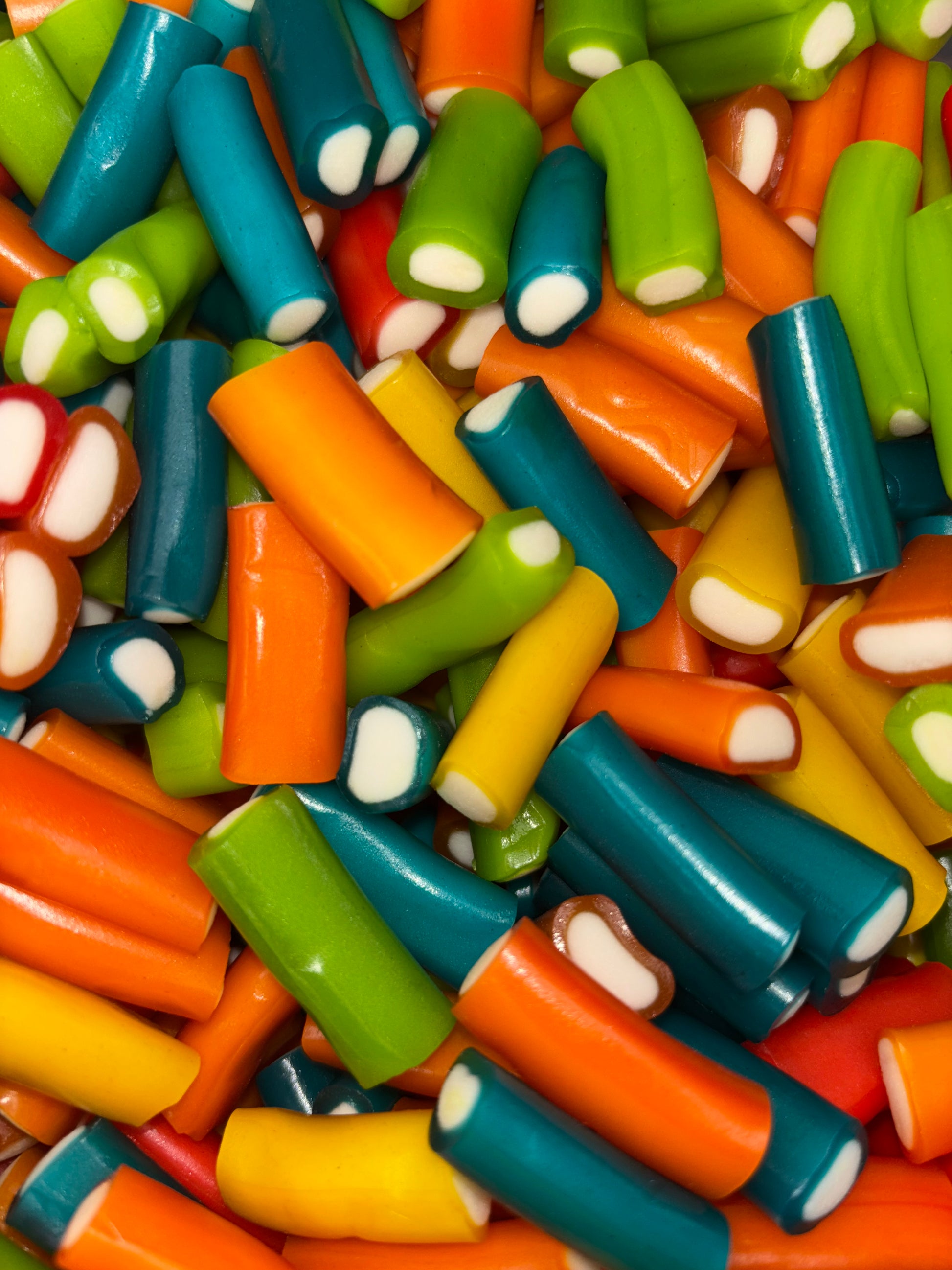 📋 Ingrédients : Sirop de glucose-fructose, farine de blé, amidon de maïs, sirop de sucre inverti, eau, acidifiant E330, humectant E422, citrate trisodique, graisse végétale (palme), amidon de pomme de terre, maltodextrina, gélatine de bœuf halal, arômes artificiel, correcteur d'acidité E333, émulsifiant E322, colorants : E100, E129*, E133, agent d'enrobage: huile végétale de palme.