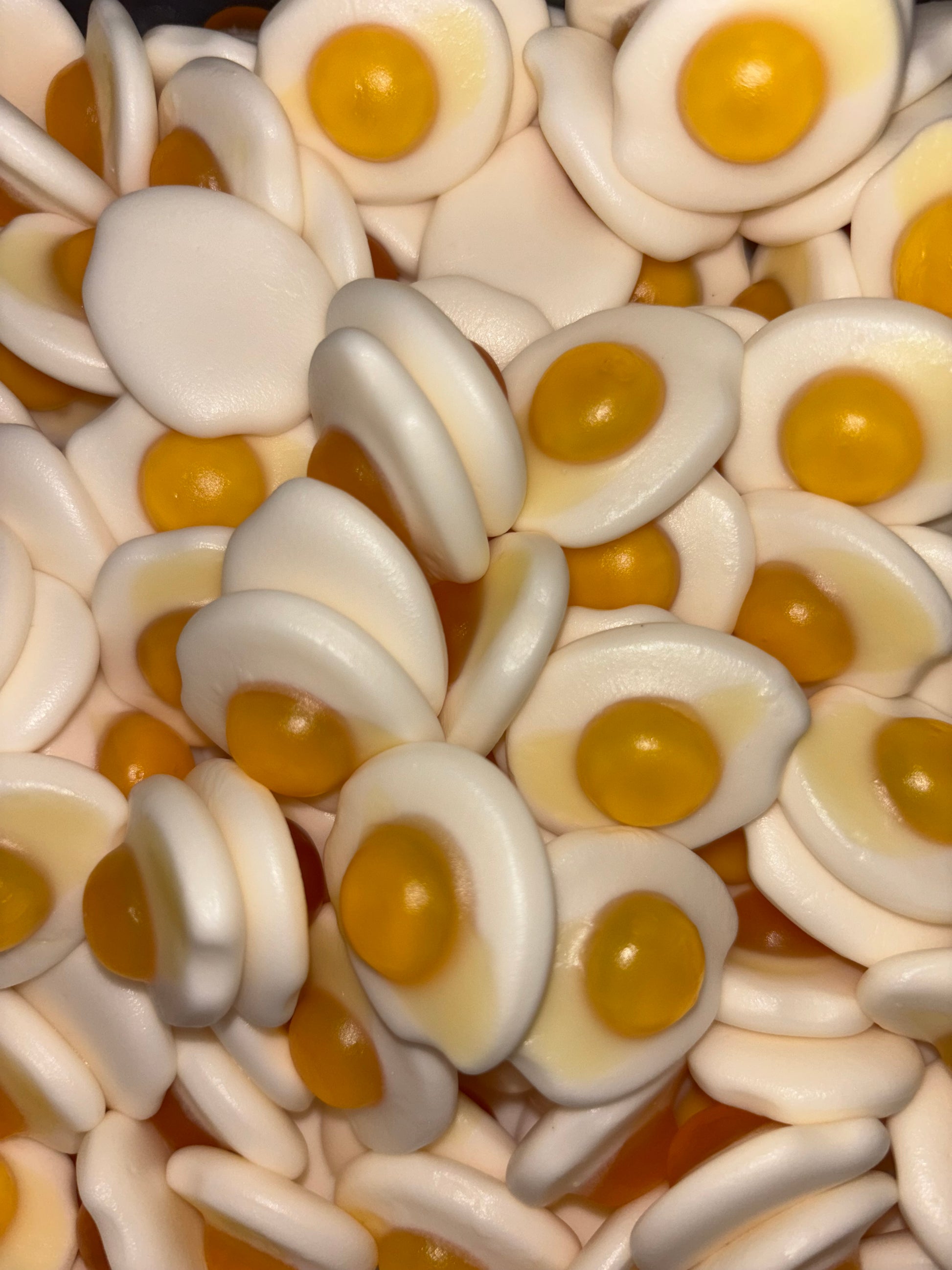 Ingrédients: Sirop de glucose, sucre, dextrose, gélatine, Acidifiant : acide citrique, arôme, Colorants : E 104*, E122*, E124*, huile végétale, Agents d'enrobage : cire d'abeilles, cire de carnauba