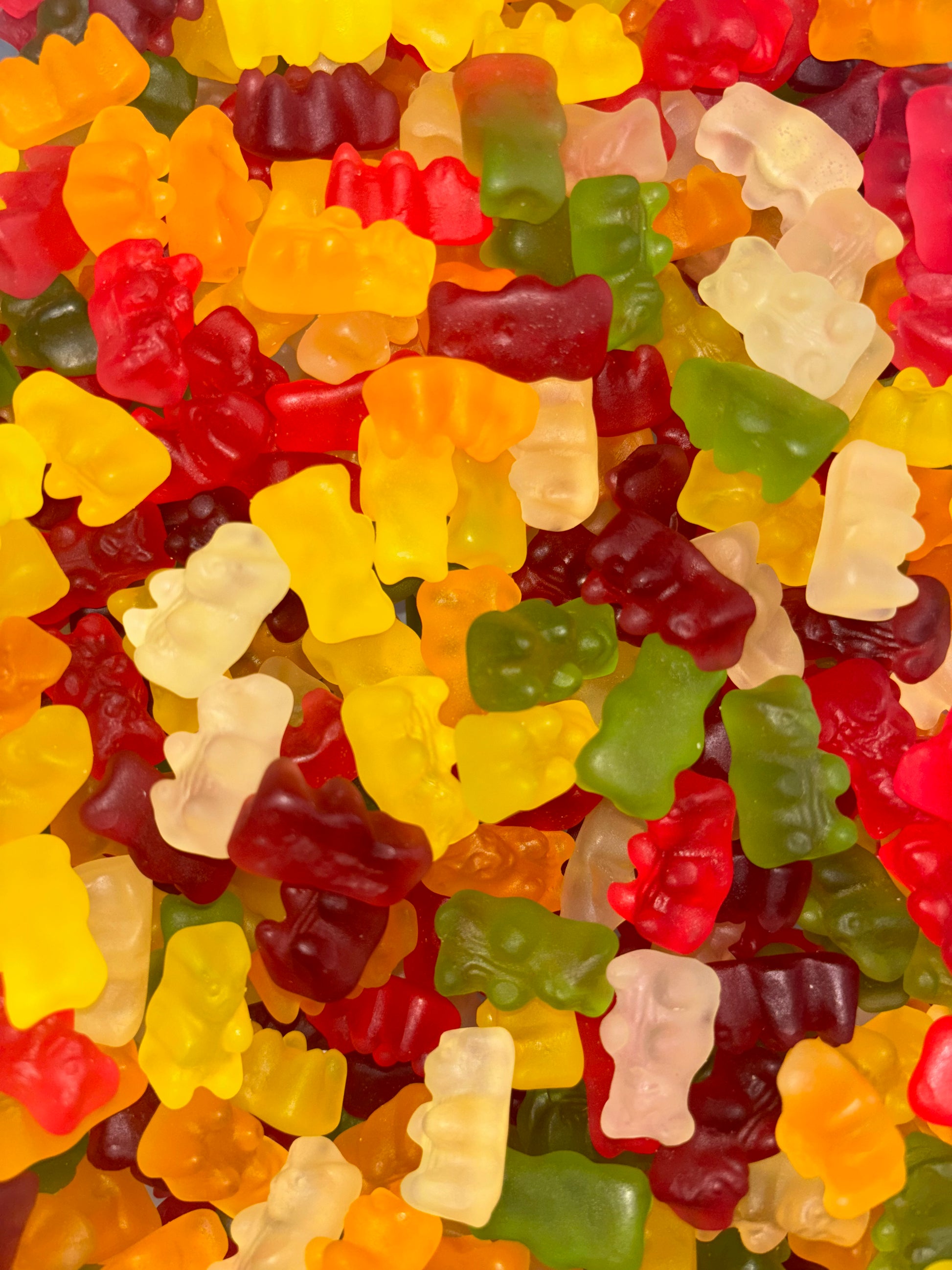 Ingrédients: édulcorants: sirop de maltitol, glycosides de stéviol issus de stevia; eau, gélatine, acidifiant: E330; arômes, concentré de spiruline et de Carthage, concentré de raisin, concentré de jus de carotte noire, colorants: E100, E160c; huile végétale (cocos), agent d’enrobage: cire de carnauba.