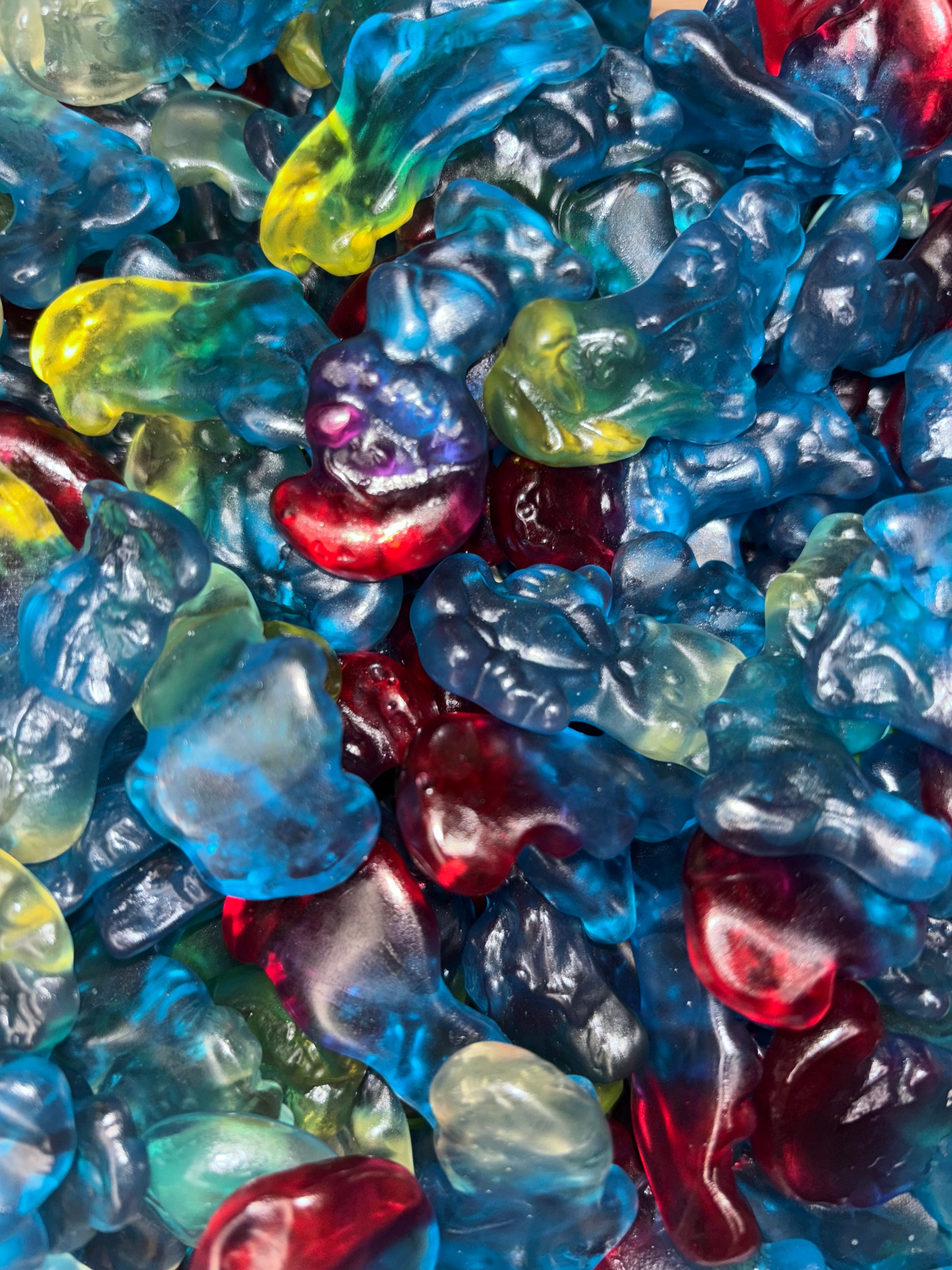 Ingrédients: Sucre, sirop de glucose, graisse végétale, humectant: sirop de sorbitol, acidifiant : acide citrique, gélatine, arômes, concentrés de fruits et de plantes: citron, carthame, spiruline, cassis, carotte, radis, pomme, correcteur d'acidité : carbonate acide de sodium, agent d'enrobage : cire d'abeilles blanche et jaune, sirop de sucre inverti