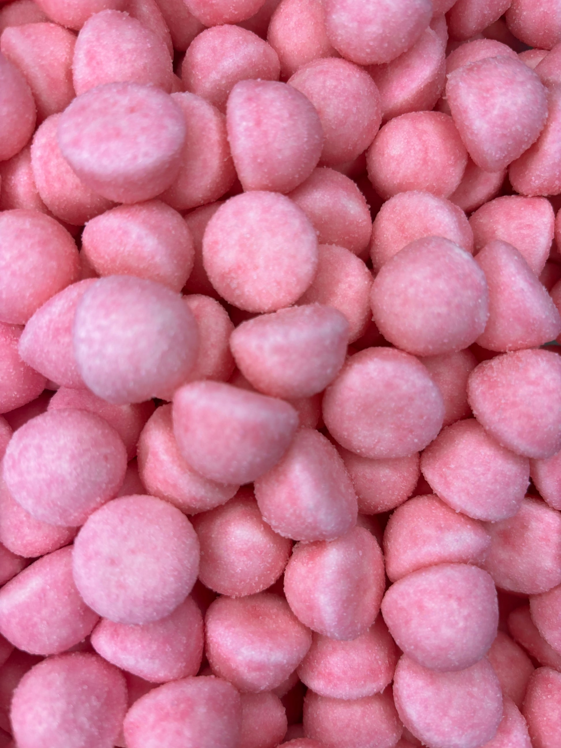 Ingrédients: sucre; sirop de glucose; gélatine; acidifiants: acide citrique, acide malique; correcteurs d'acidité: citrate tricalcique, malate acide de sodium; agent d'enrobage: cire de carnauba; arôme; colorant: carmins. Tenir à l'abri de la chaleur et de l'humidité.