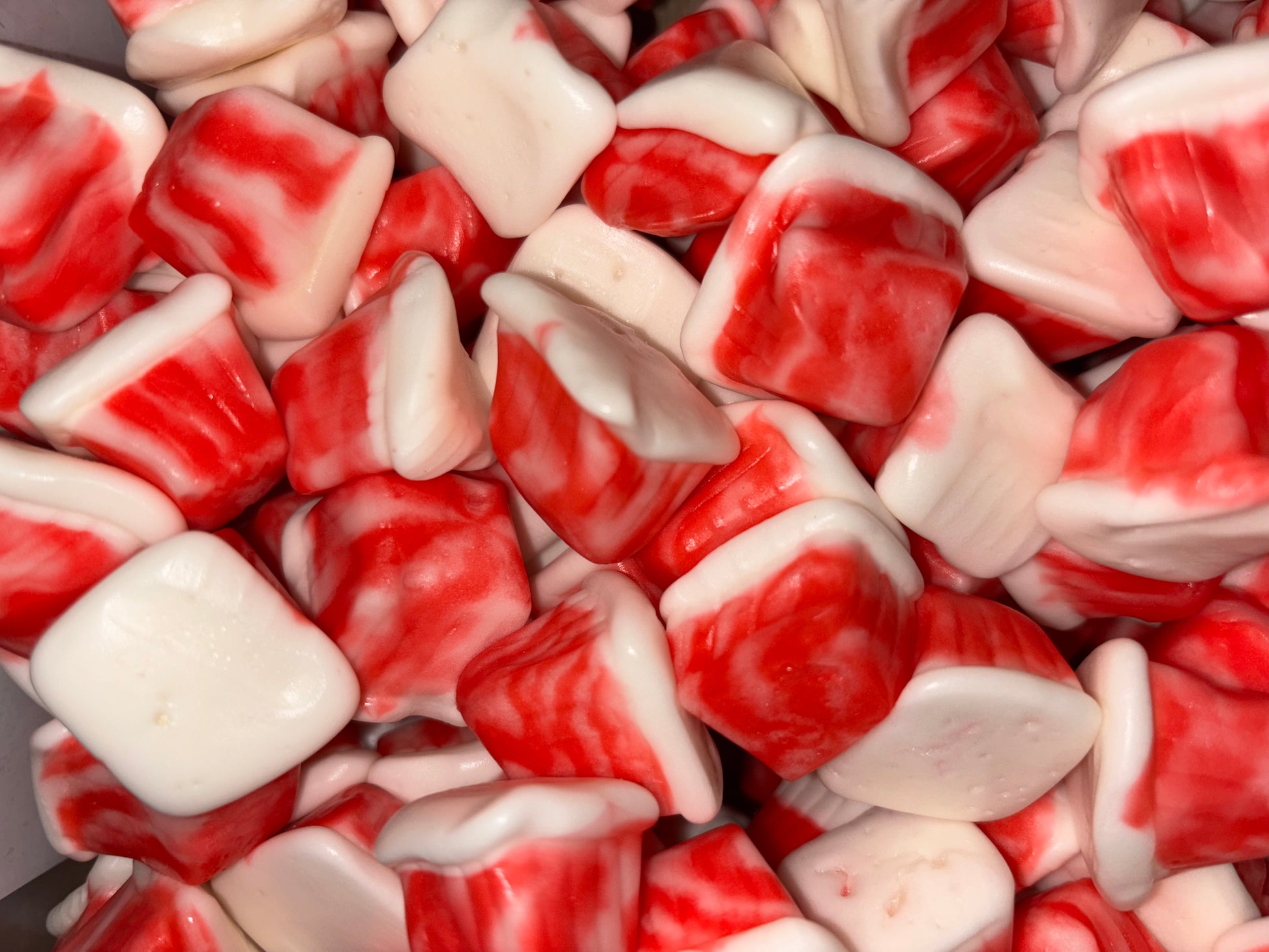 📋 Ingrédients : Sucre, sirop de glucose, eau, amidon modifié de pomme de terre, gélatine, acidifiants : E330, E296, E270, gélifiant : pectine, arômes, colorants : E102*, E129*, E133, E-171. huile végétale (palme), Agent démoulage : cire de carnauba.